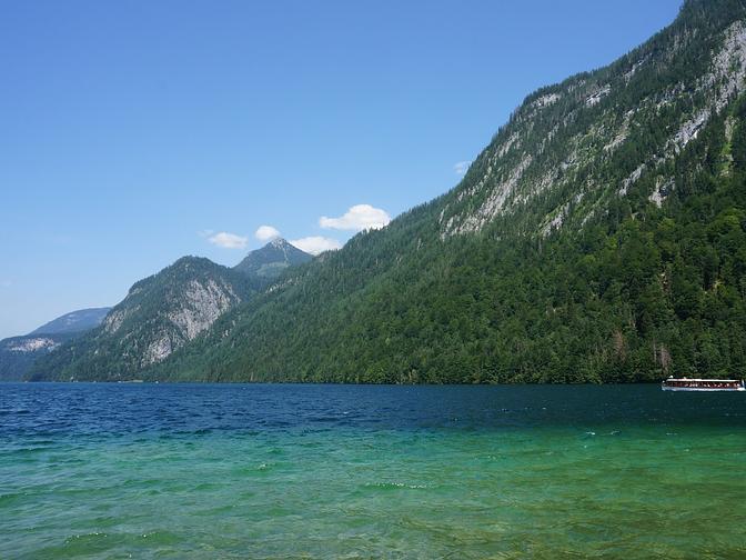 吃完午餐下午天氣好轉,我們出發到另一個湖奧斯湖(Ullswater),車程是半小時。湖區的湖大多都是叫'Water'而不是'Lake'。Ullswater是湖區裡第二大湖,也是被群山包圍,周圍都是青蔥的樹。比起剛剛的Derwentwater,這個湖的水清澈得多,加上藍天白雲的配合,整個風景就更美,也是我整個旅程最喜歡的地方。由於Ullswater很大,所以我都是一路上看到有漂亮的景色就找個附近停車位停下,沒有一個很準確的位置。下車後喜歡看湖也好,找條步道行山都不錯,遊湖區就很隨意,也因此最好是自駕。